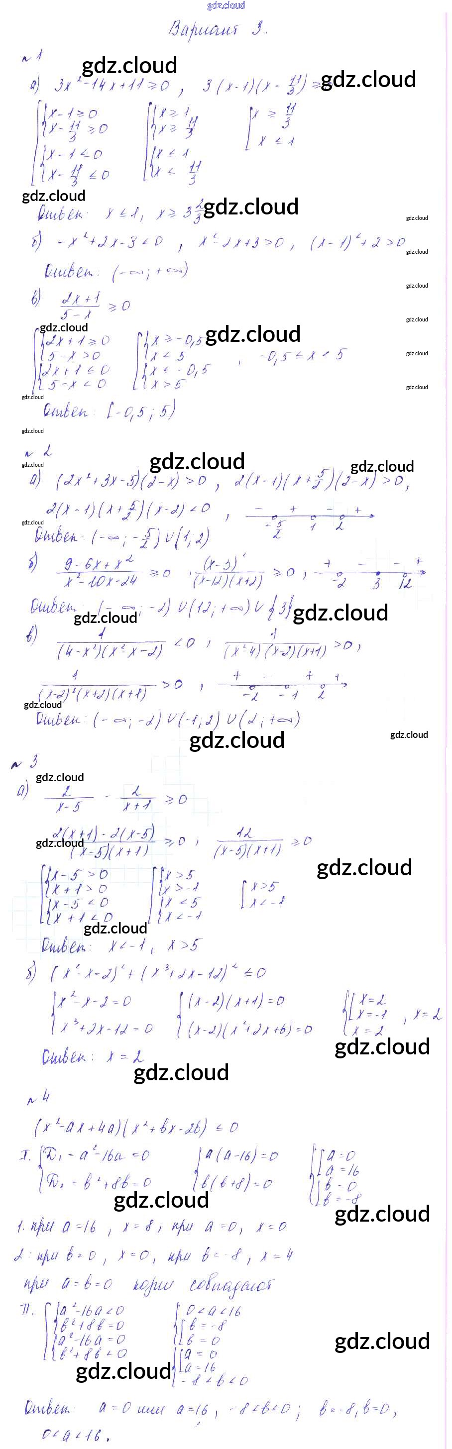 КР №5. Квадратичная функция. Варианты Ответы к Контрольным работам по Алгебре 8 класс Дидактические материалы Зив Виктория плюс