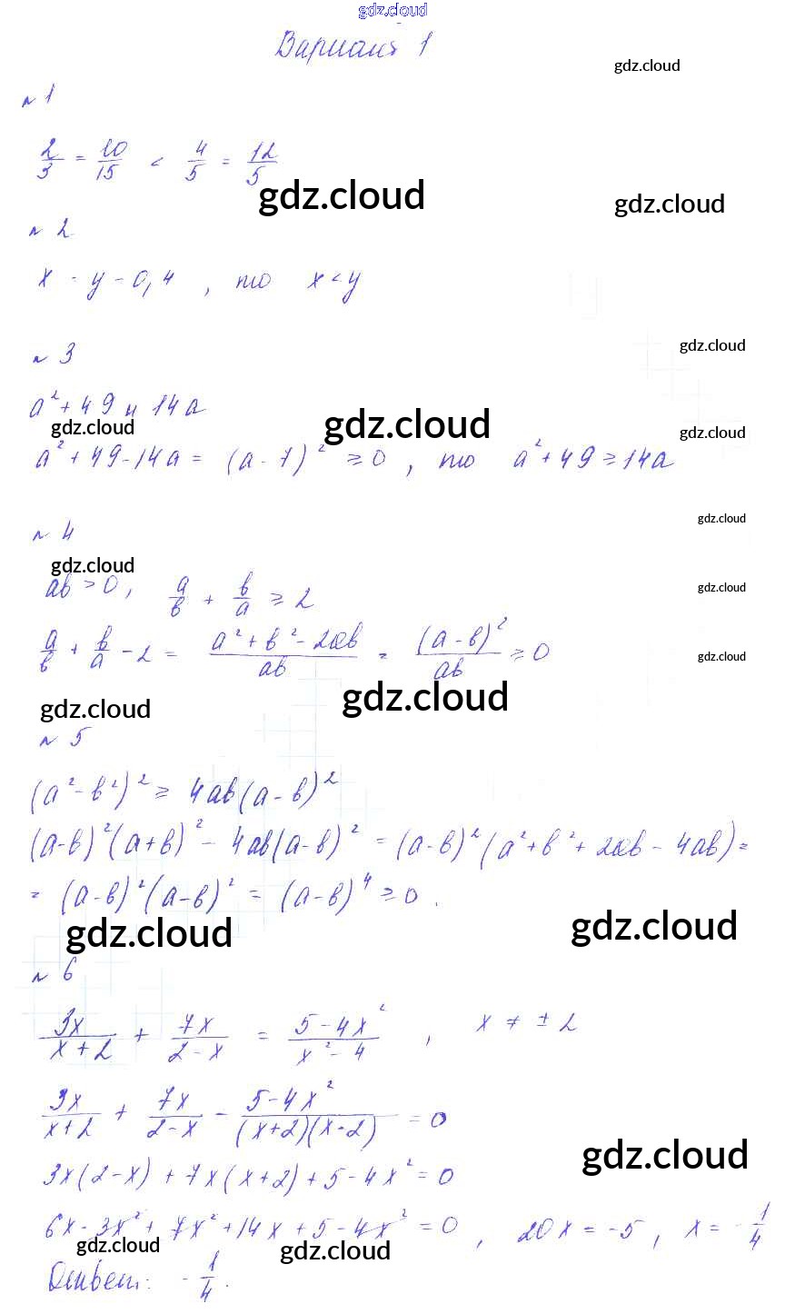 Ответ на задание Вариант-1 Дидактические материалы Алгебра за 8 (восьмой) класс Зив, Гольдич 2012