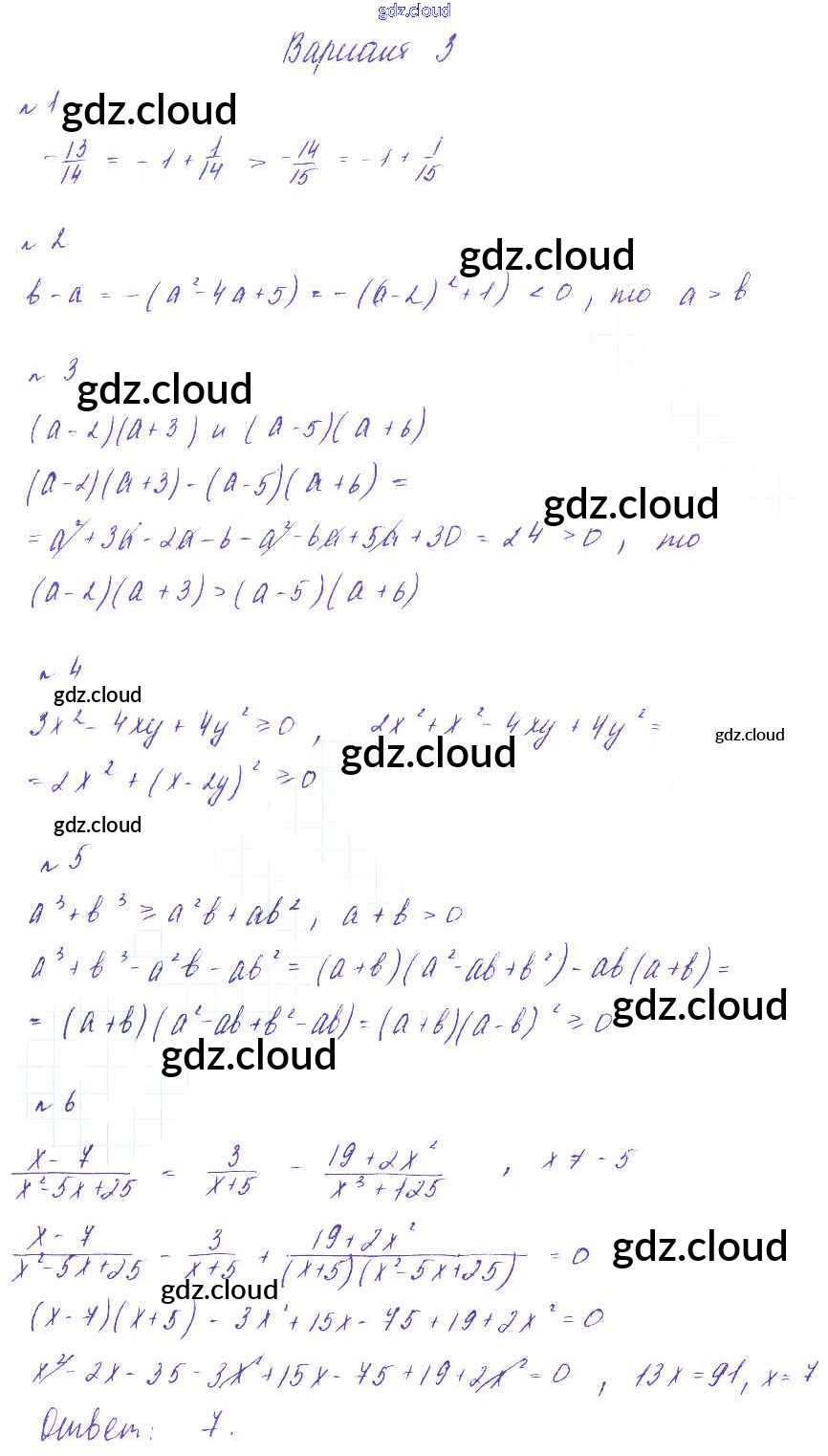 СР №1. Положительные и отрицательные числа. Числовые неравенства Ответы к Самостоятельным работам по Алгебре 8 класс Дидактические материалы Зив Виктория плюс