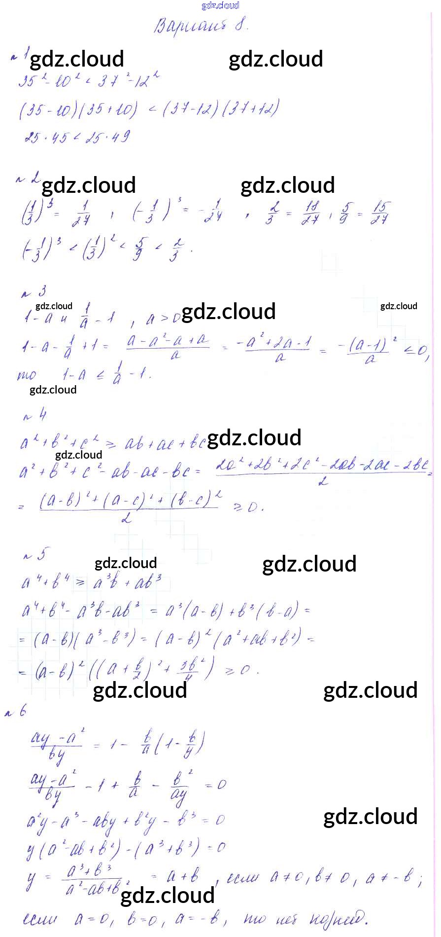 Ответ на задание Вариант-8 Дидактические материалы Алгебра за 8 (восьмой) класс Зив, Гольдич 2012