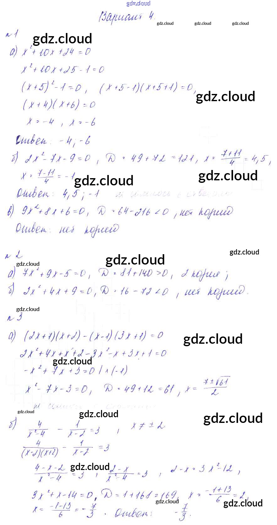 Ответ на задание Вариант-4 Дидактические материалы Алгебра за 8 (восьмой) класс Зив, Гольдич 2012