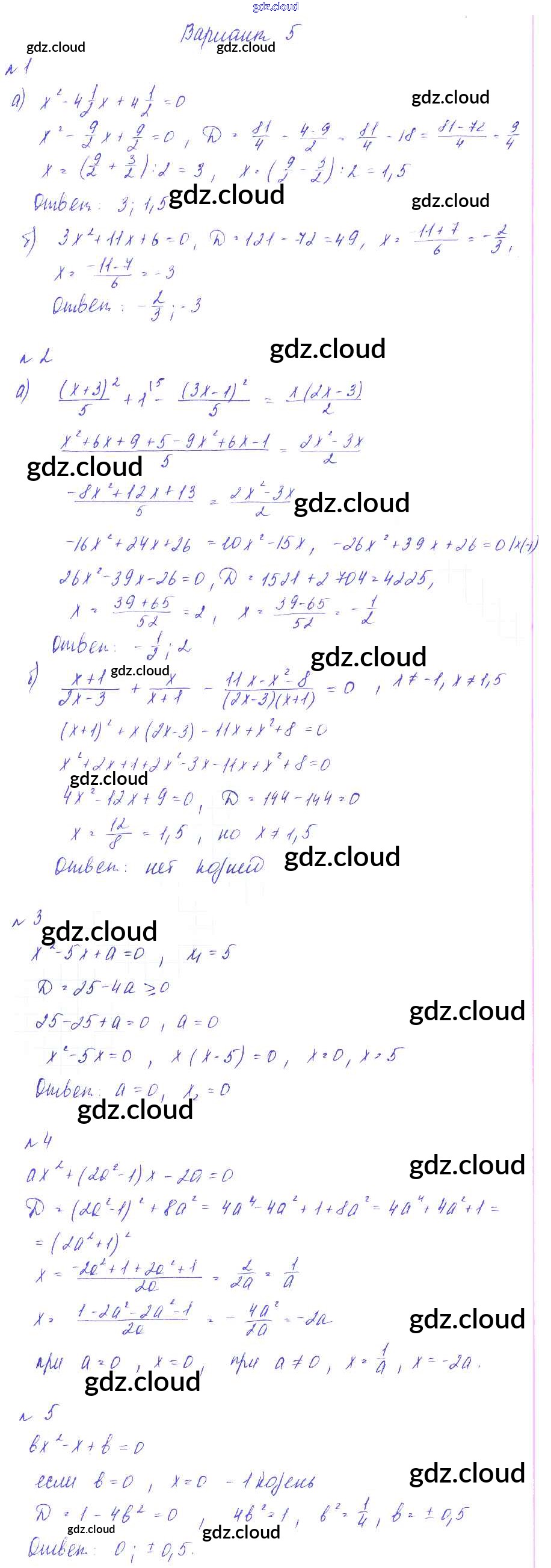 Ответ на задание Вариант-5 Дидактические материалы Алгебра за 8 (восьмой) класс Зив, Гольдич 2012
