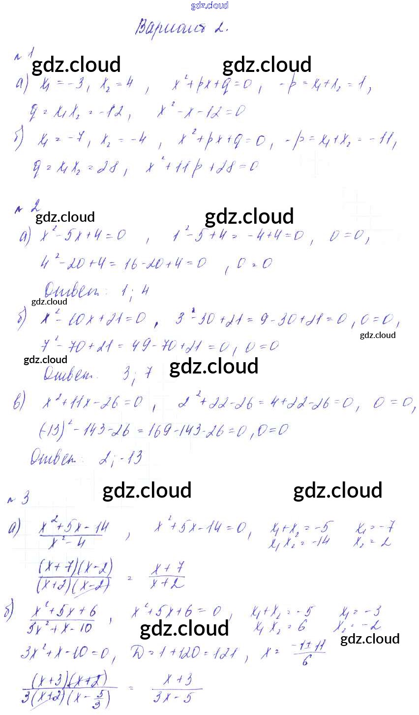 СР №11. Теорема Виета Ответы к Самостоятельным работам по Алгебре 8 класс Дидактические материалы Зив Виктория плюс