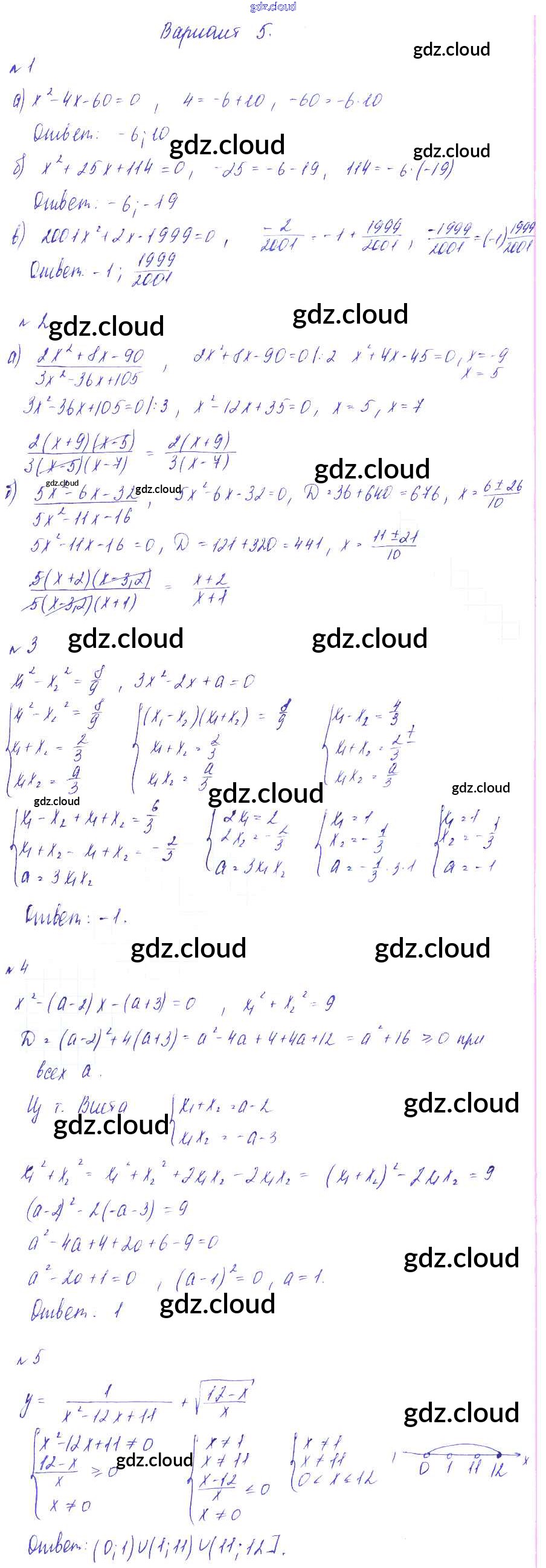 Ответ на задание Вариант-5 Дидактические материалы Алгебра за 8 (восьмой) класс Зив, Гольдич 2012