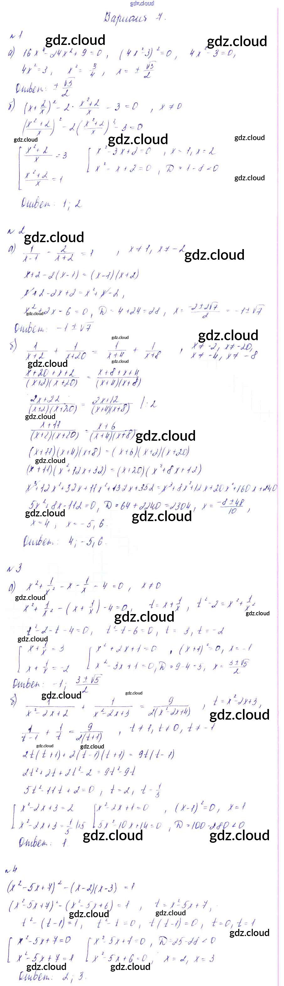Ответ на задание Вариант-7 Дидактические материалы Алгебра за 8 (восьмой) класс Зив, Гольдич 2012