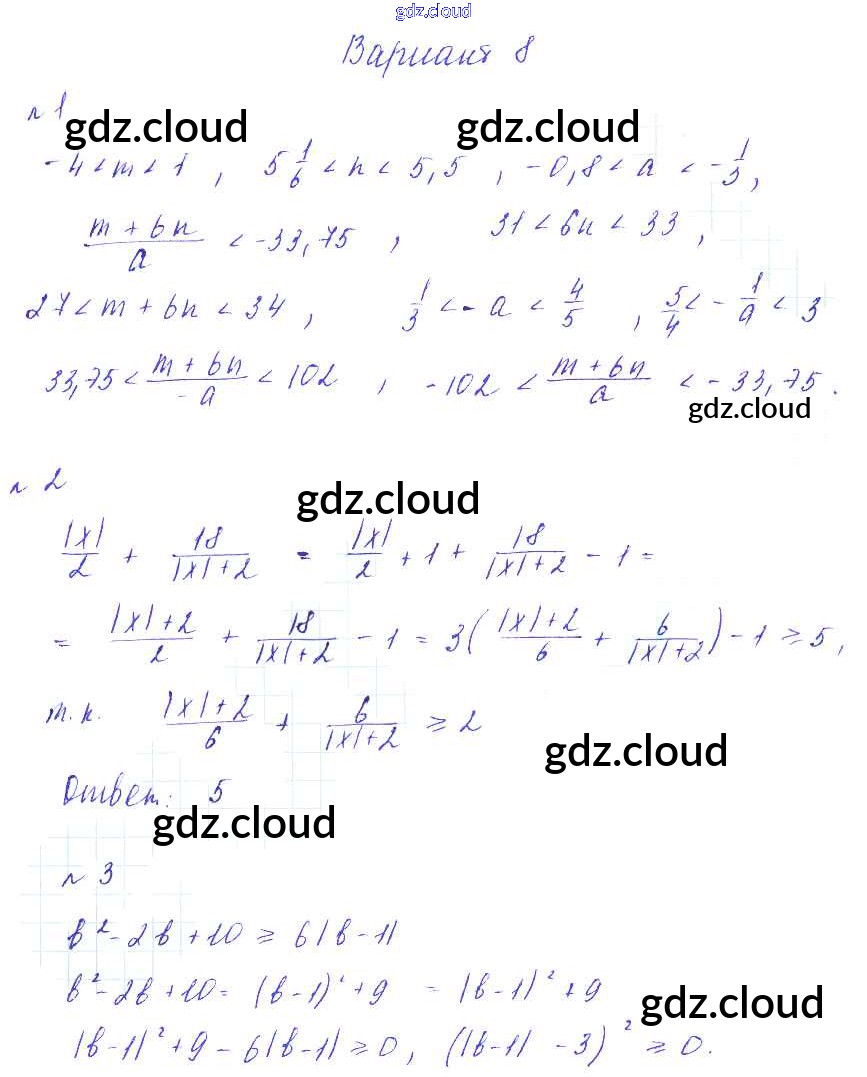 Ответ на задание Вариант-8 Дидактические материалы Алгебра за 8 (восьмой) класс Зив, Гольдич 2012