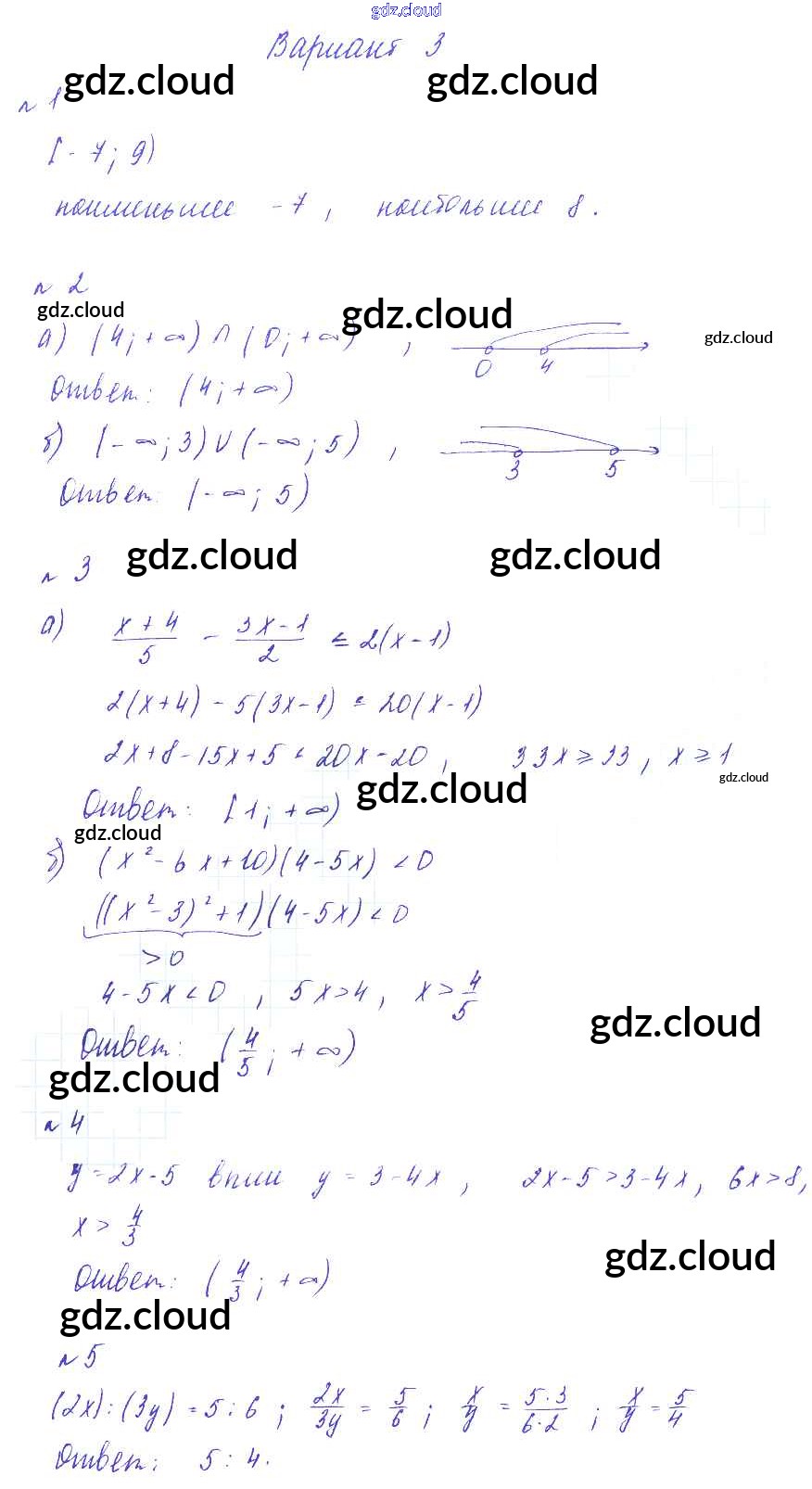 СР №3. Решение неравенств. Числовые промежутки Ответы к Самостоятельным работам по Алгебре 8 класс Дидактические материалы Зив Виктория плюс