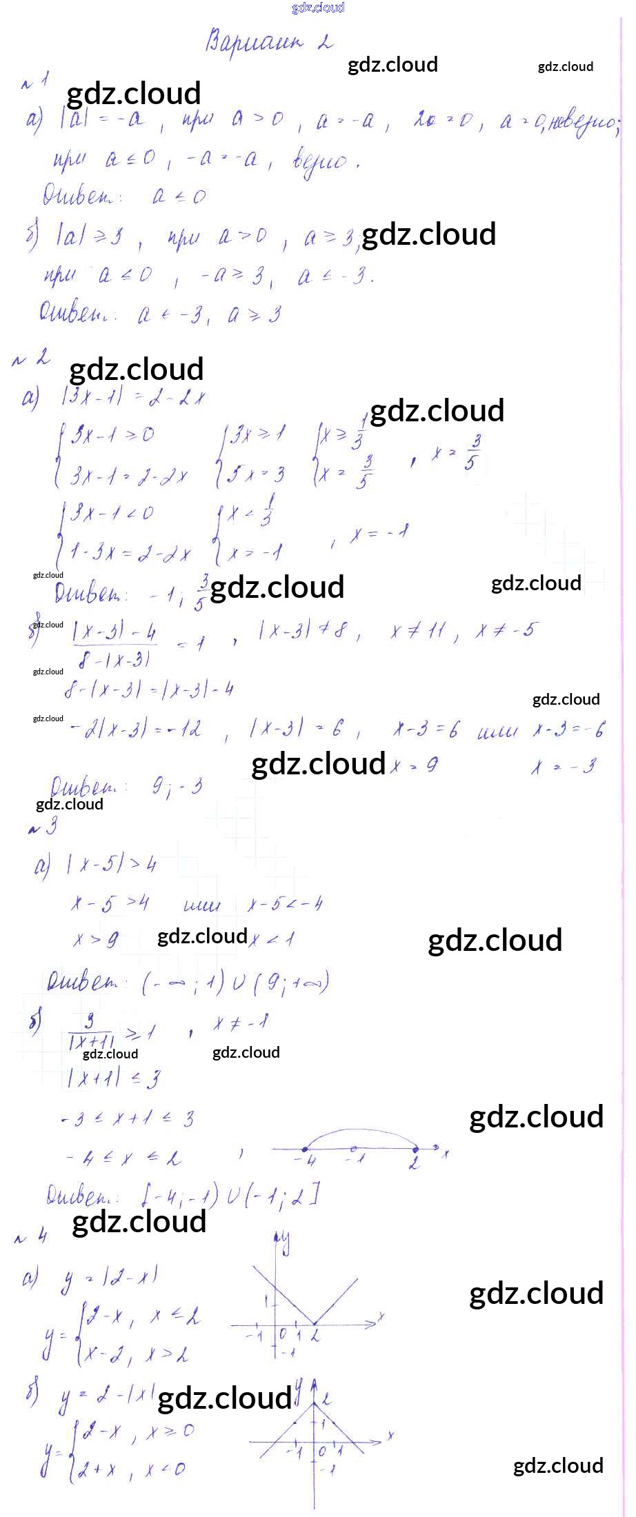 СР №5.Модуль числа. Уравнения и неравенства, содержащие модуль Ответы к Самостоятельным работам по Алгебре 8 класс Дидактические материалы Зив Виктория плюс
