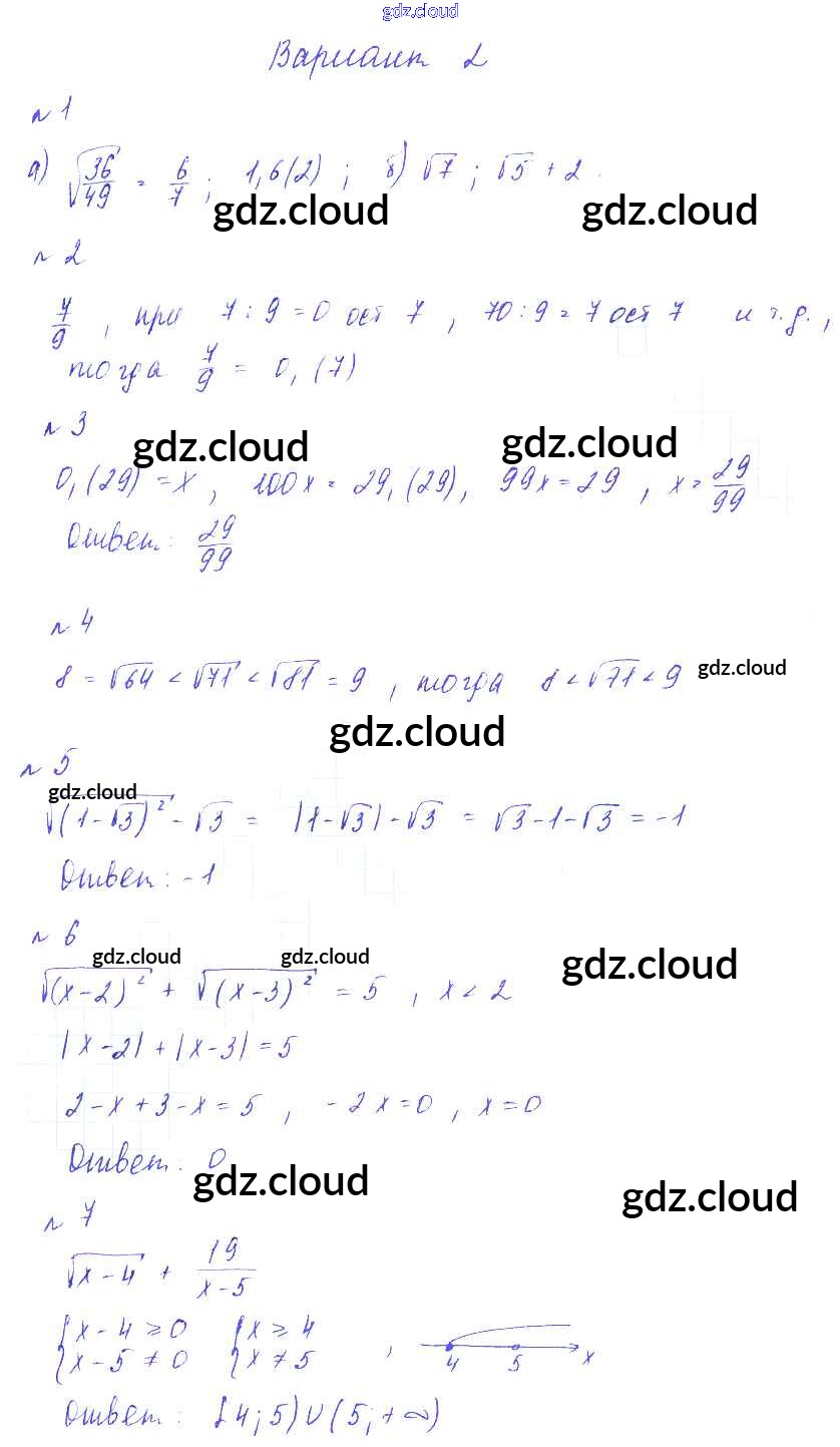 Ответ на задание Вариант-2 Дидактические материалы Алгебра за 8 (восьмой) класс Зив, Гольдич 2012