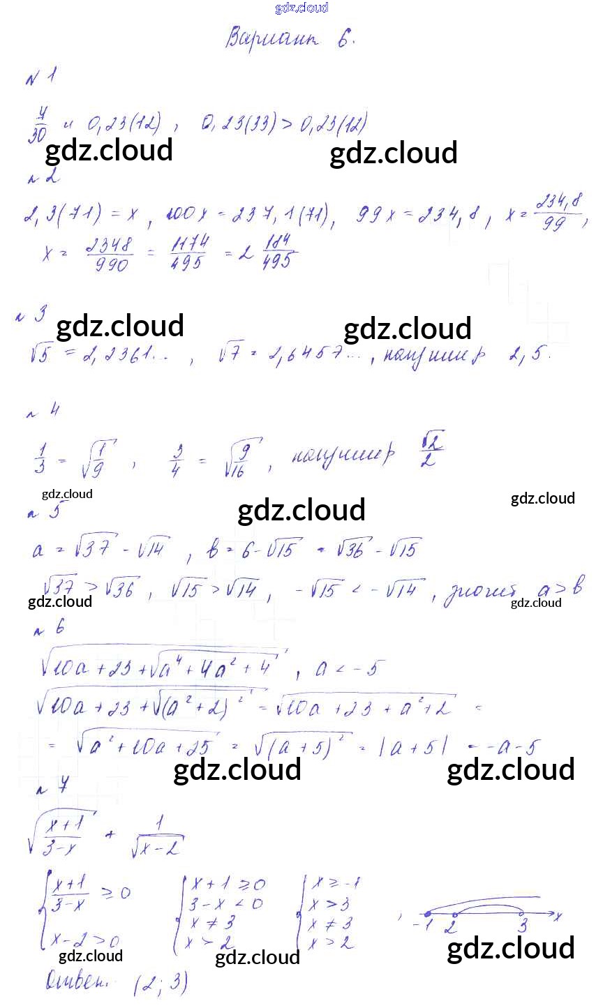 Ответ на задание Вариант-6 Дидактические материалы Алгебра за 8 (восьмой) класс Зив, Гольдич 2012