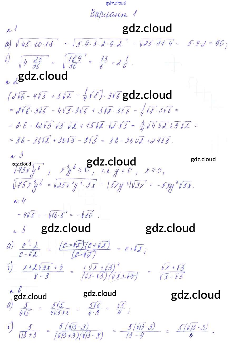 Ответ на задание Вариант-1 Дидактические материалы Алгебра за 8 (восьмой) класс Зив, Гольдич 2012