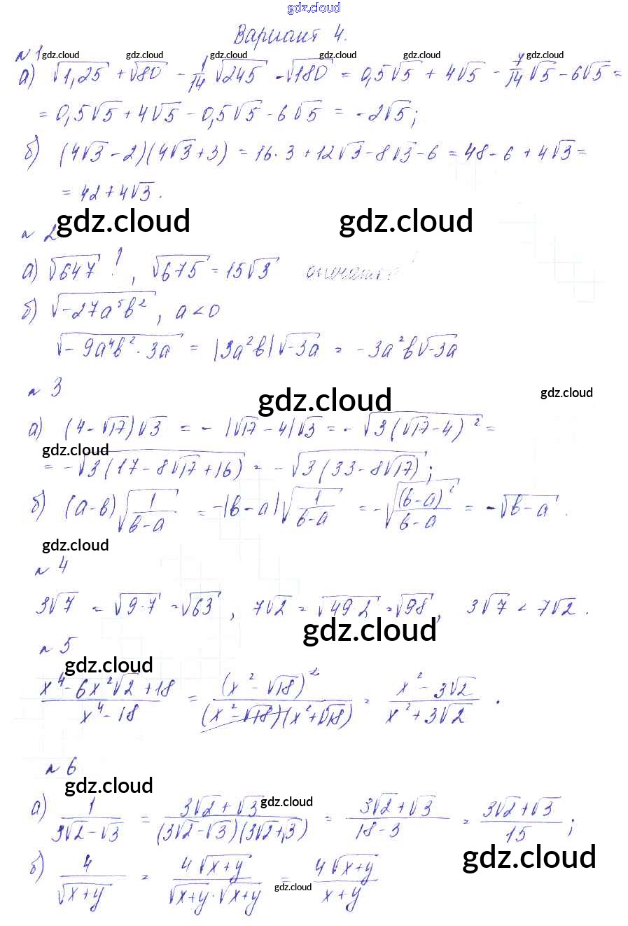 Ответ на задание Вариант-4 Дидактические материалы Алгебра за 8 (восьмой) класс Зив, Гольдич 2012