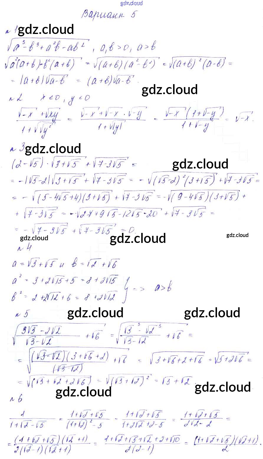 Ответ на задание Вариант-5 Дидактические материалы Алгебра за 8 (восьмой) класс Зив, Гольдич 2012