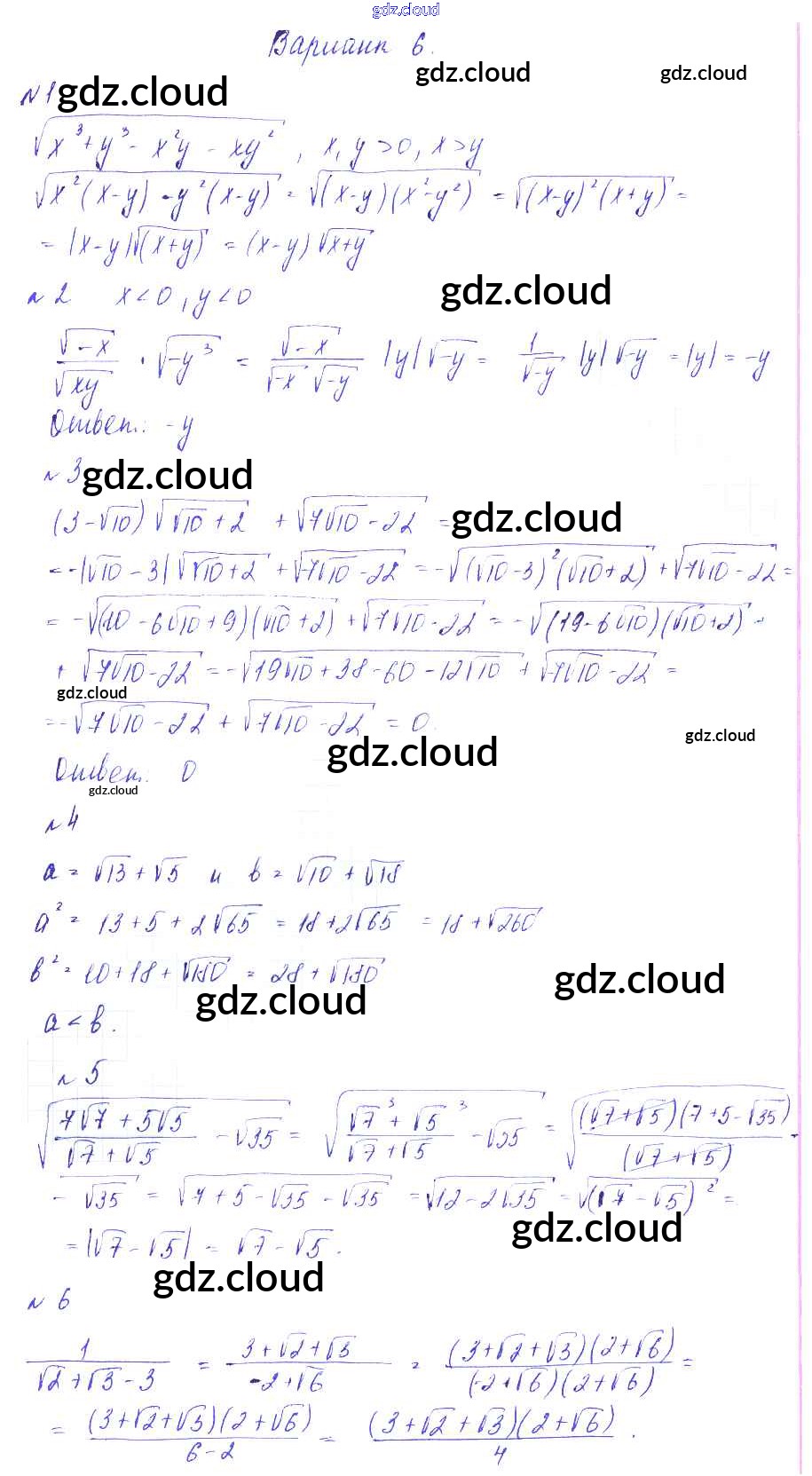 Ответ на задание Вариант-6 Дидактические материалы Алгебра за 8 (восьмой) класс Зив, Гольдич 2012
