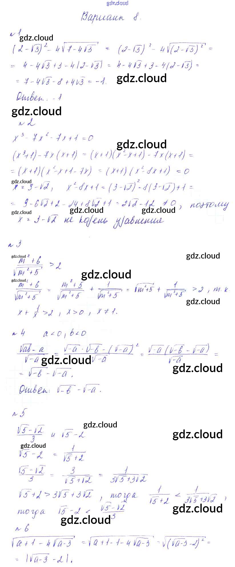 Ответ на задание Вариант-8 Дидактические материалы Алгебра за 8 (восьмой) класс Зив, Гольдич 2012