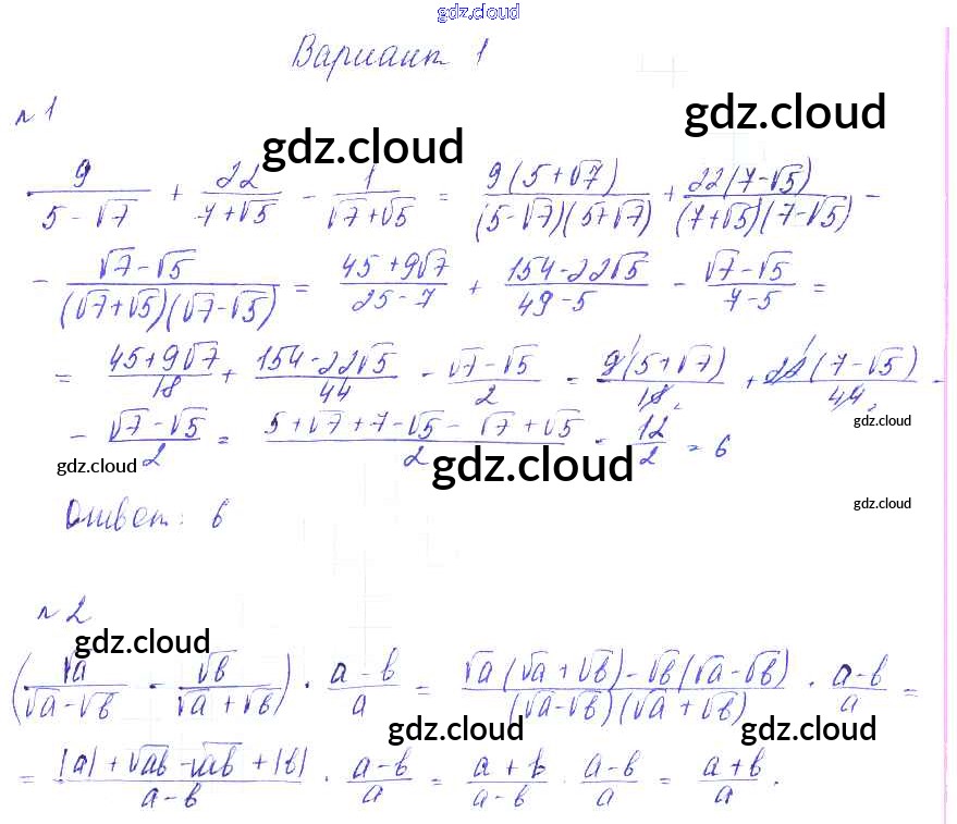 Ответ на задание Вариант-1 Дидактические материалы Алгебра за 8 (восьмой) класс Зив, Гольдич 2012