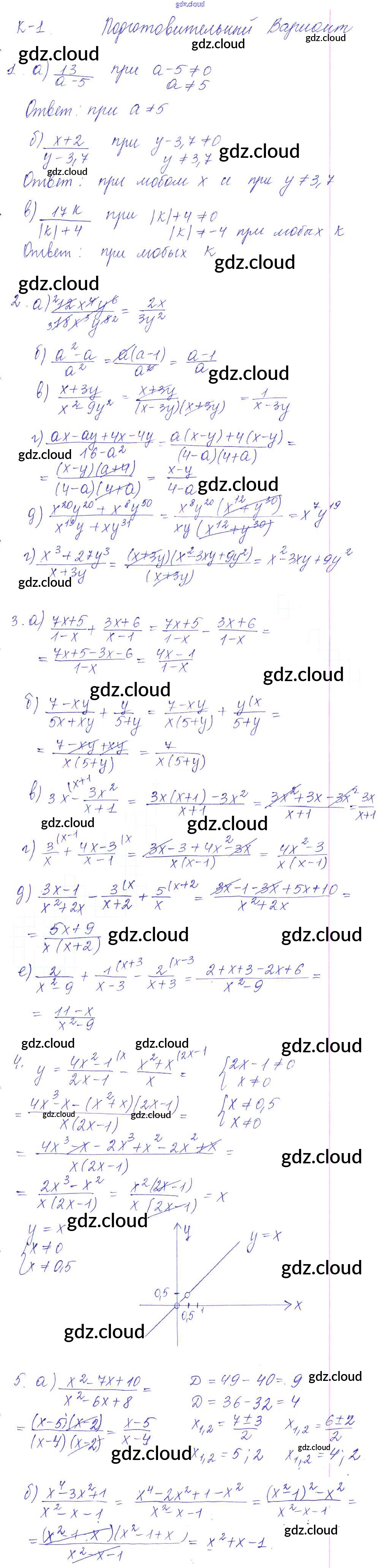 КР-1. Сокращение, сложение и вычитание алгебраических дробей Ответы к Контрольным работам по Алгебре 8 класс Дидактические материалы Звавич УМК Экзамен