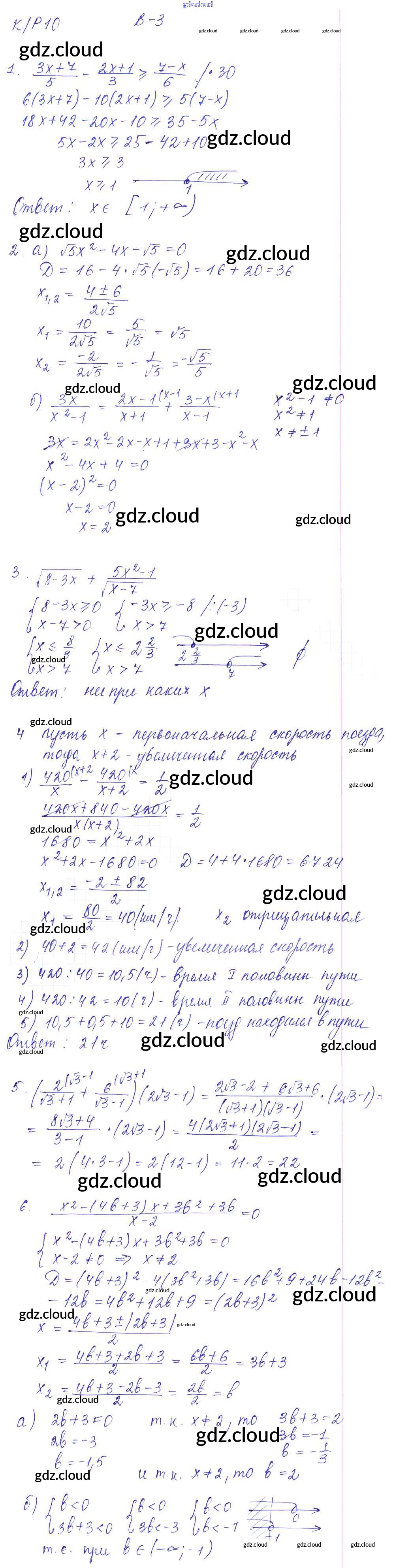 КР-10. Итоговая Ответы к Контрольным работам по Алгебре 8 класс Дидактические материалы Звавич УМК Экзамен