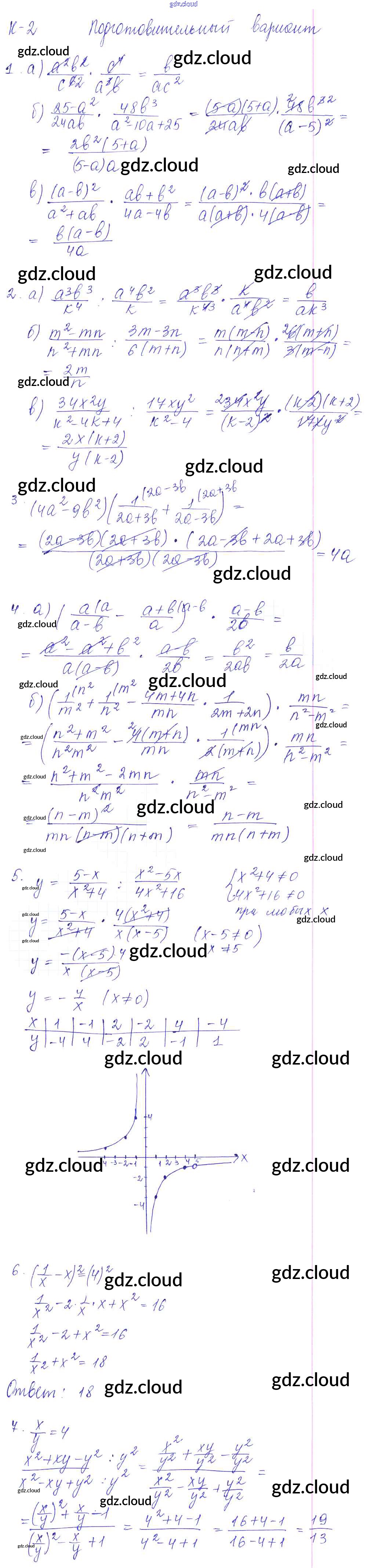 КР-2. Умножение и деление, совместные действия с алгебраическими дробями Ответы к Контрольным работам по Алгебре 8 класс Дидактические материалы Звавич УМК Экзамен