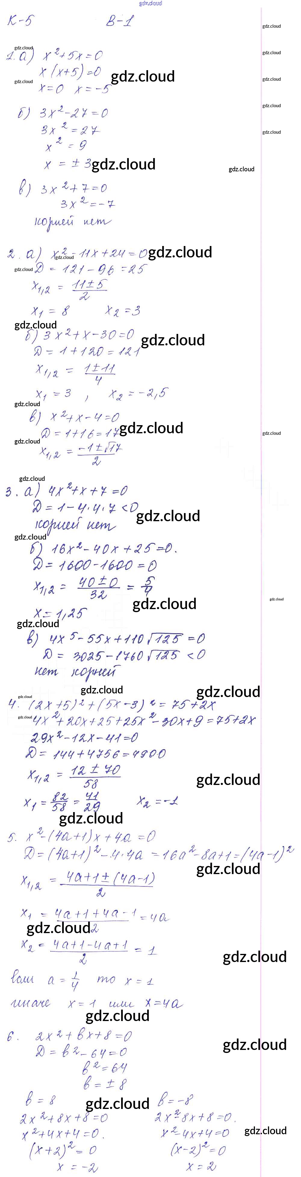 КР-5. Квадратные уравнения Ответы к Контрольным работам по Алгебре 8 класс Дидактические материалы Звавич УМК Экзамен