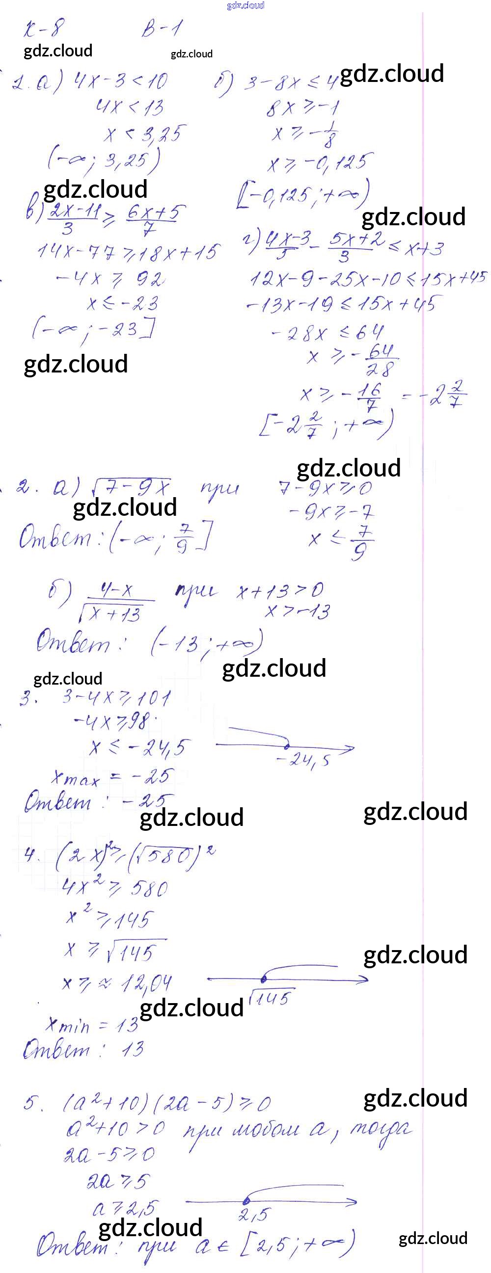 КР-8. Решение линейных неравенств Ответы к Контрольным работам по Алгебре 8 класс Дидактические материалы Звавич УМК Экзамен
