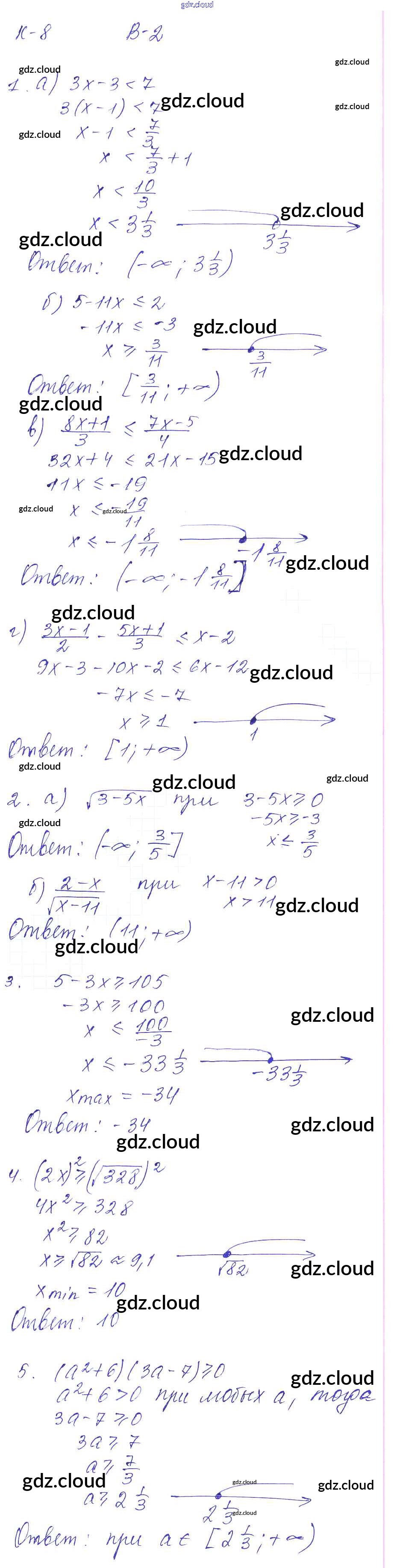 КР-8. Решение линейных неравенств Ответы к Контрольным работам по Алгебре 8 класс Дидактические материалы Звавич УМК Экзамен