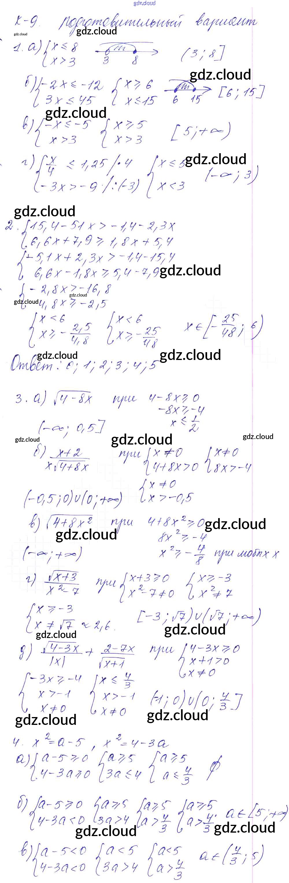 КР-9. Системы линейных неравенств Ответы к Контрольным работам по Алгебре 8 класс Дидактические материалы Звавич УМК Экзамен