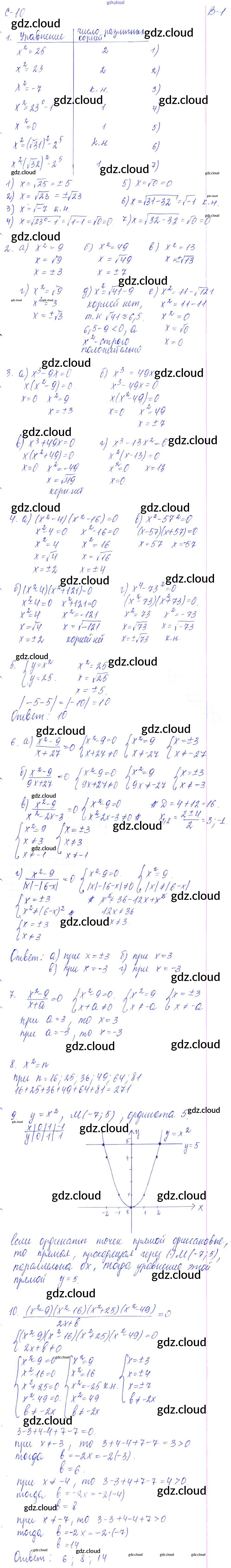 СР - 10. Уравнение x2 = a Ответы к Самостоятельным работам. Варианты по Алгебре 8 класс Дидактические материалы Звавич УМК Экзамен