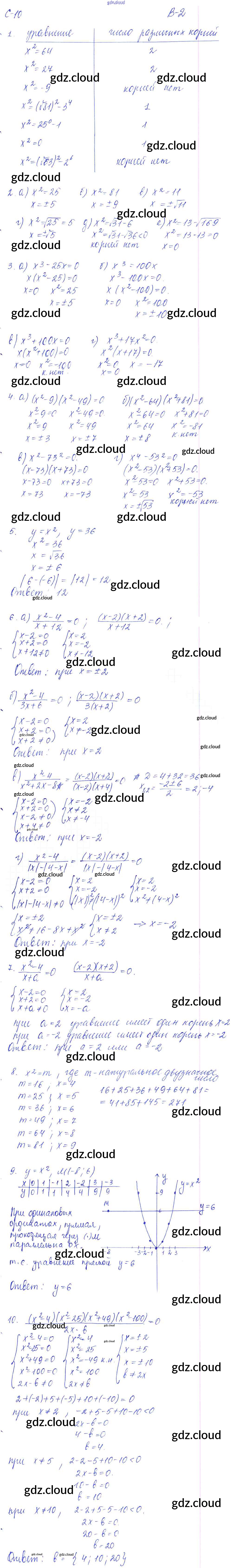 СР - 10. Уравнение x2 = a Ответы к Самостоятельным работам. Варианты по Алгебре 8 класс Дидактические материалы Звавич УМК Экзамен