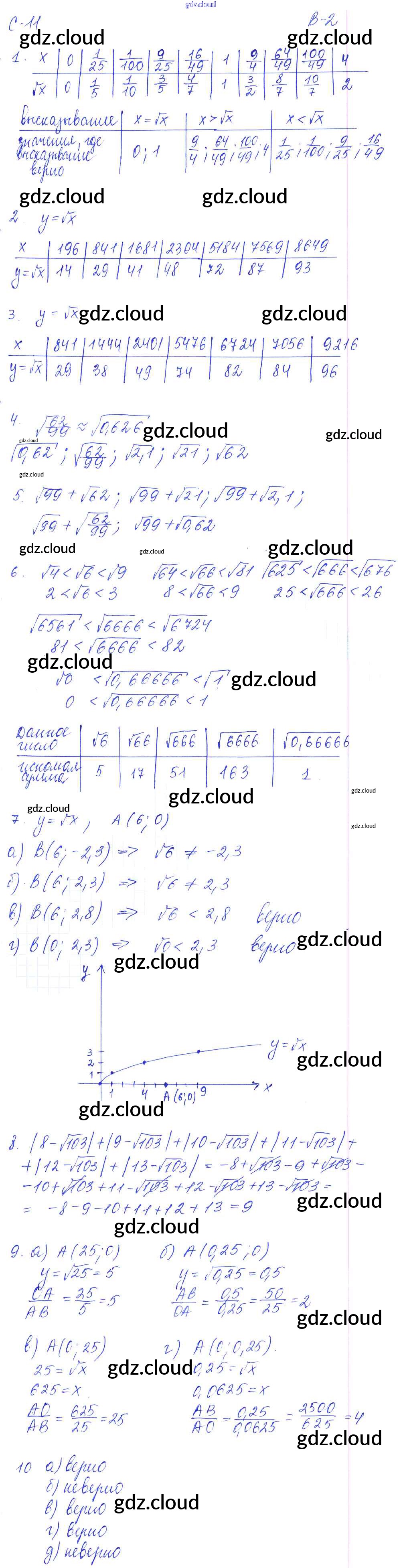 СР - 11. Значение квадратного корня. Функция y = √x и её свойства Ответы к Самостоятельным работам. Варианты по Алгебре 8 класс Дидактические материалы Звавич УМК Экзамен