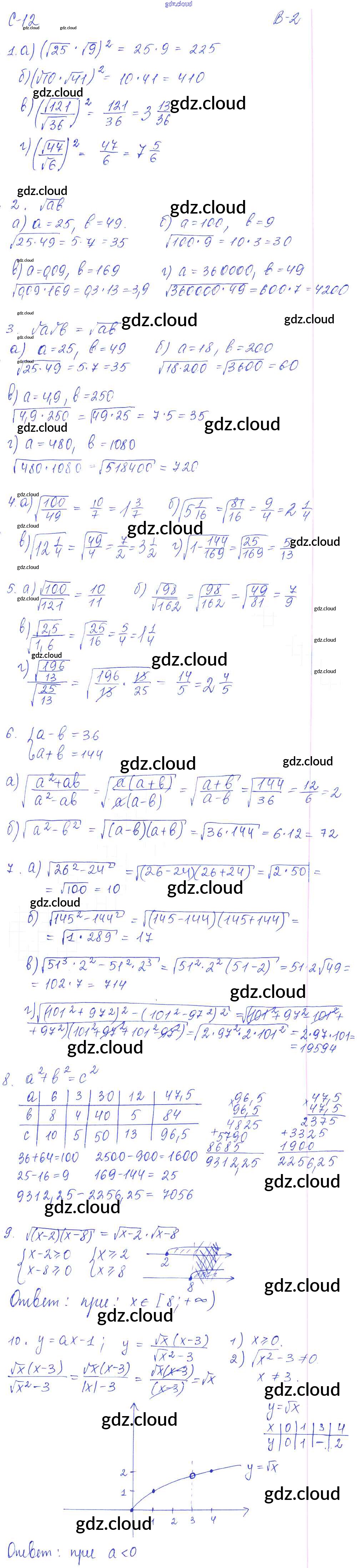 СР - 12. Корень из произведения и частного, произведение и частное квадратных корней Ответы к Самостоятельным работам. Варианты по Алгебре 8 класс Дидактические материалы Звавич УМК Экзамен