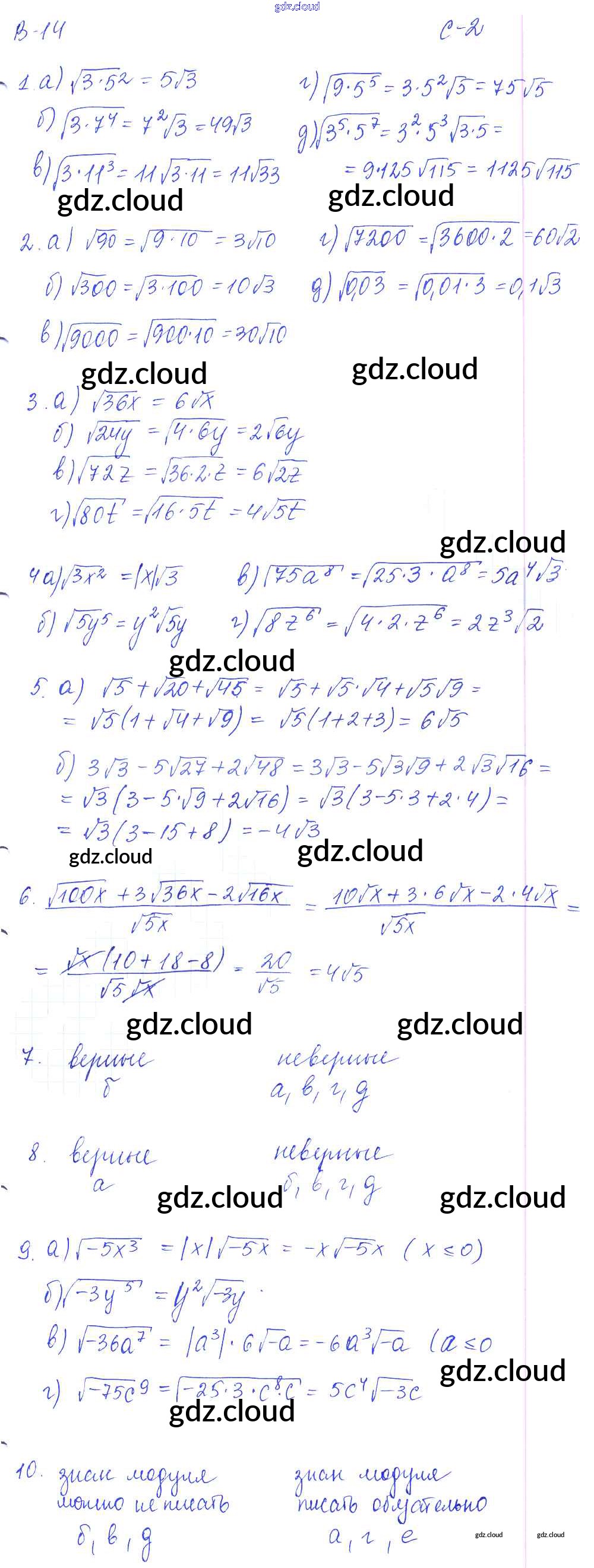 СР - 14. Вынесение множителя из-под знака корня Ответы к Самостоятельным работам. Варианты по Алгебре 8 класс Дидактические материалы Звавич УМК Экзамен