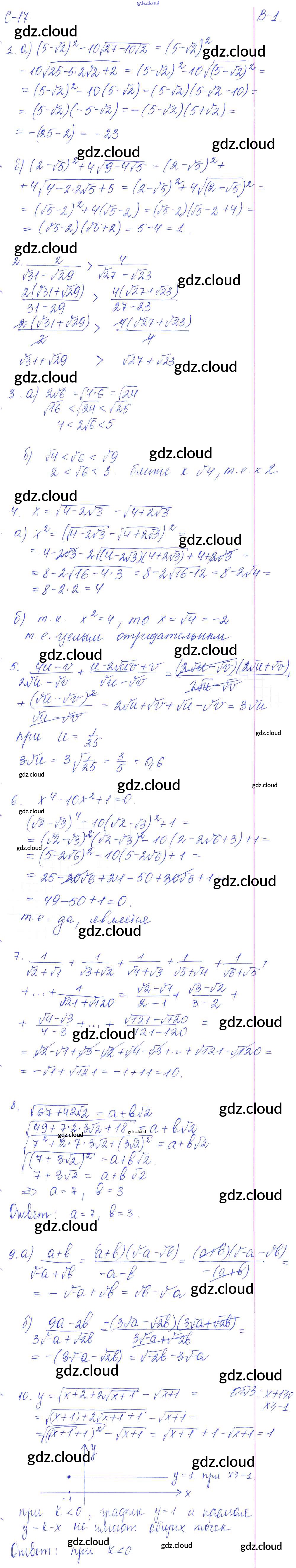 СР - 17. Квадратные корни Ответы к Самостоятельным работам. Варианты по Алгебре 8 класс Дидактические материалы Звавич УМК Экзамен