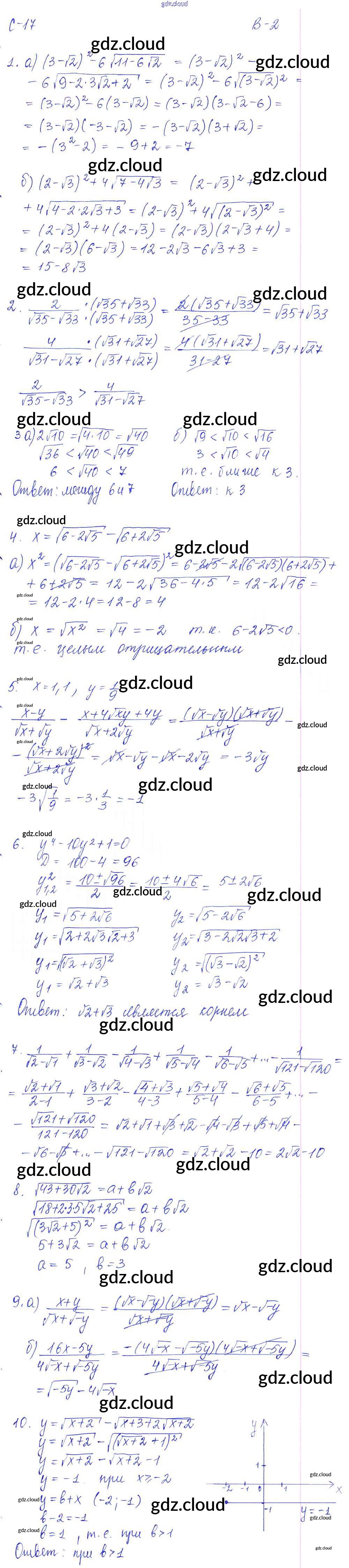 СР - 17. Квадратные корни Ответы к Самостоятельным работам. Варианты по Алгебре 8 класс Дидактические материалы Звавич УМК Экзамен