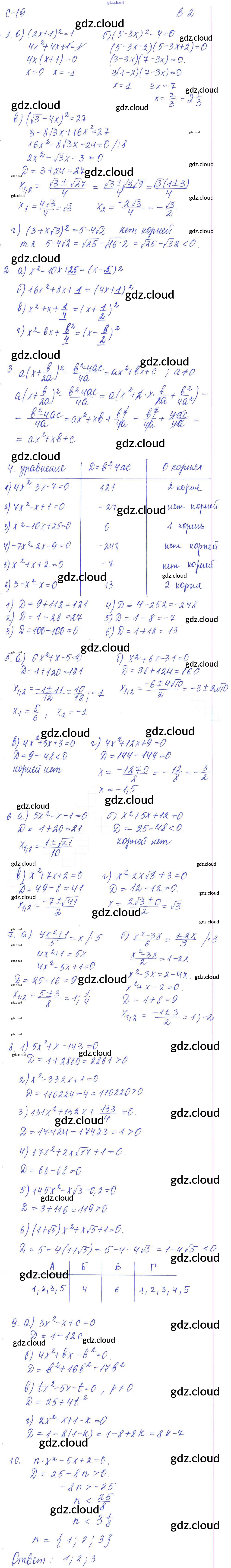 СР - 19. Формула корней квадратного уравнения Ответы к Самостоятельным работам. Варианты по Алгебре 8 класс Дидактические материалы Звавич УМК Экзамен