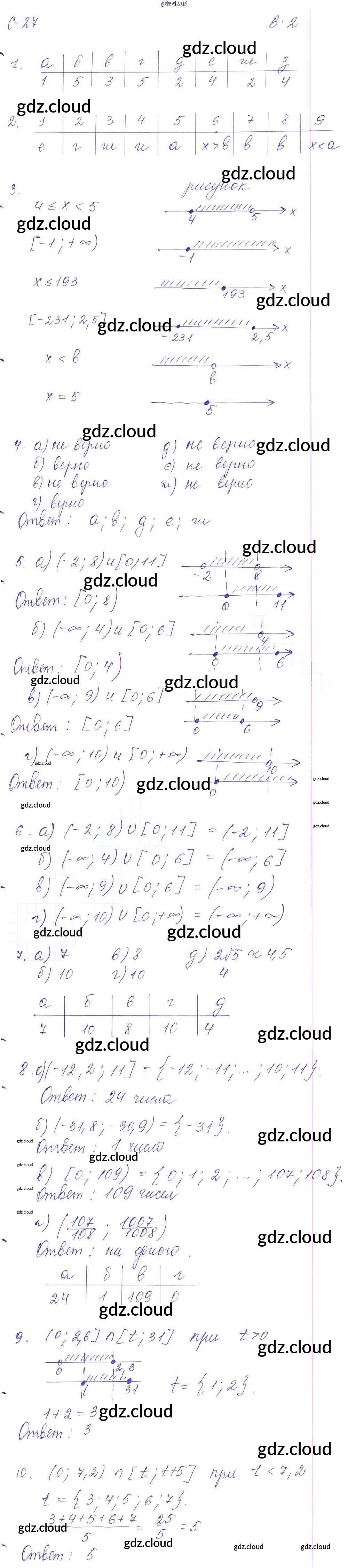 СР - 27. Числовые промежутки Ответы к Самостоятельным работам. Варианты по Алгебре 8 класс Дидактические материалы Звавич УМК Экзамен