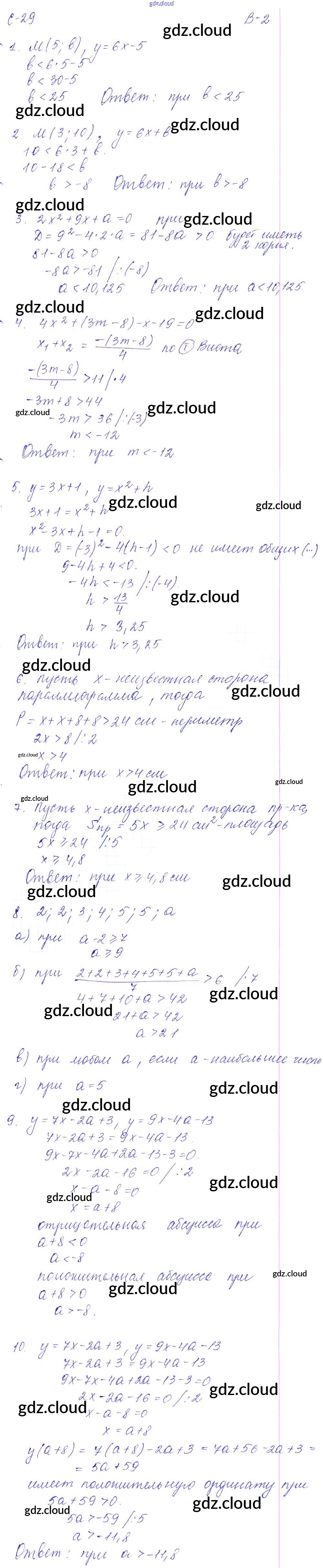 СР - 29. Задания, приводящие к неравенствам с одной переменной Ответы к Самостоятельным работам. Варианты по Алгебре 8 класс Дидактические материалы Звавич УМК Экзамен