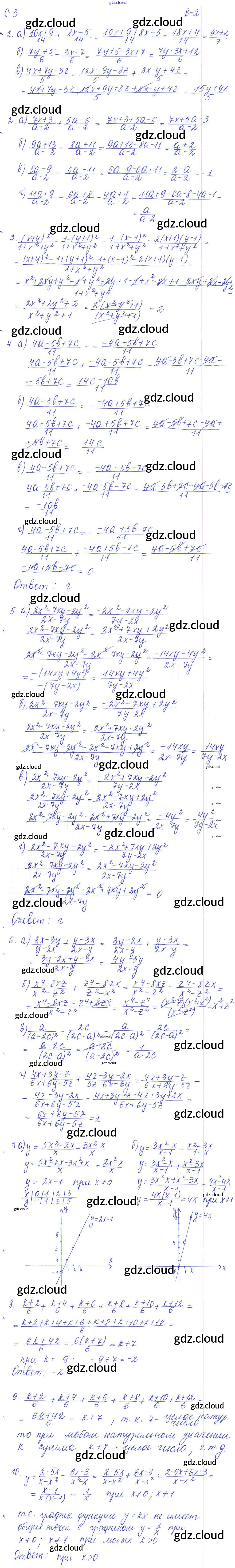 СР - 3. Сложение и вычитание алгебраических дробей с одинаковыми знаменателями Ответы к Самостоятельным работам. Варианты по Алгебре 8 класс Дидактические материалы Звавич УМК Экзамен