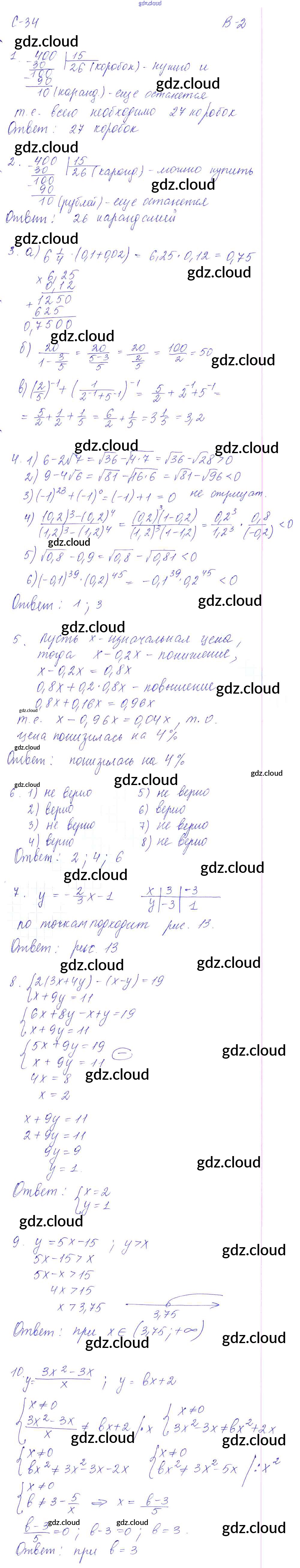 СР - 34. Задания, аналогичные заданиям ГИА и ЕГЭ, за курс алгебры Ответы к Самостоятельным работам. Варианты по Алгебре 8 класс Дидактические материалы Звавич УМК Экзамен