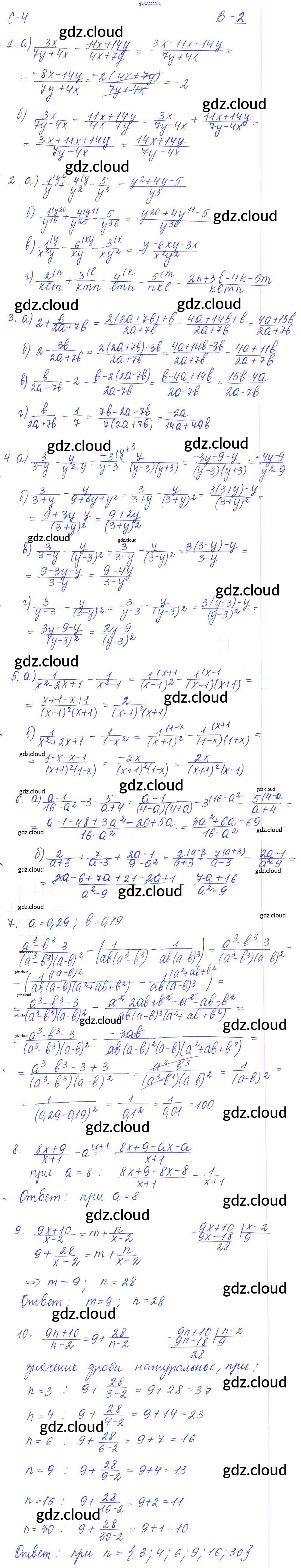 СР - 4. Сложение и вычитание алгебраических дробей с разными знаменателями Ответы к Самостоятельным работам. Варианты по Алгебре 8 класс Дидактические материалы Звавич УМК Экзамен