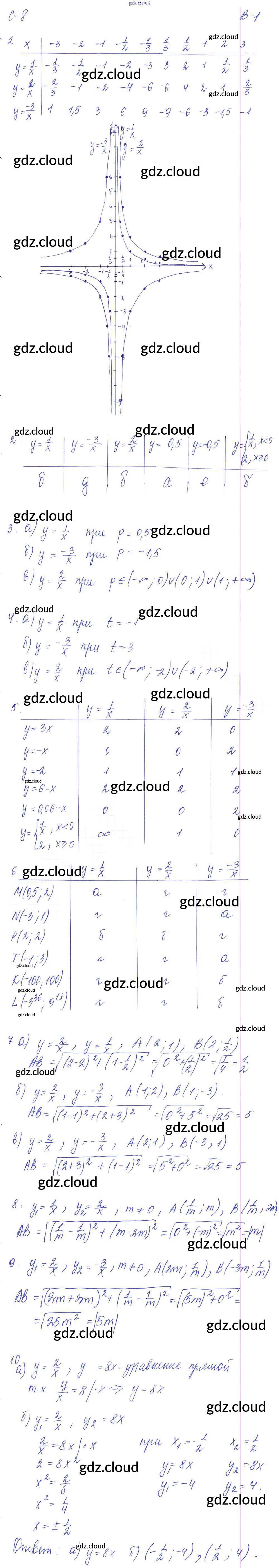 СР - 8. Функция y = k:x и её график Ответы к Самостоятельным работам. Варианты по Алгебре 8 класс Дидактические материалы Звавич УМК Экзамен
