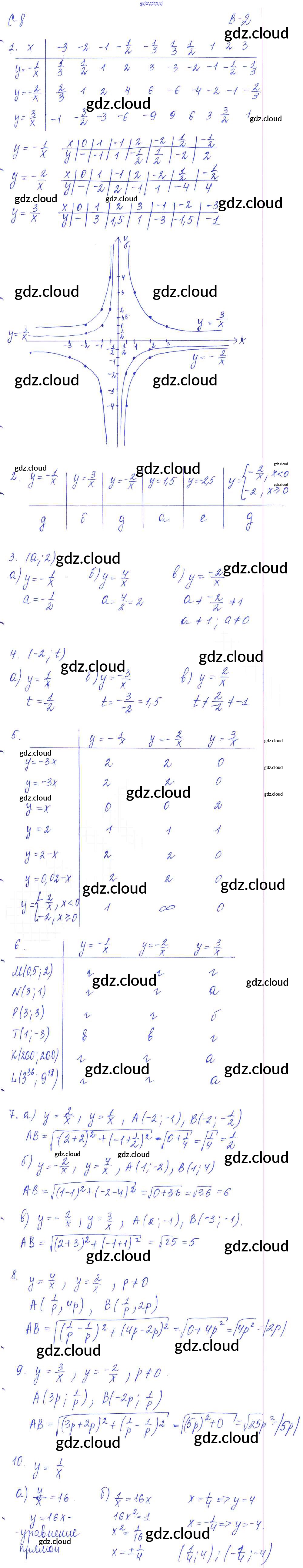 СР - 8. Функция y = k:x и её график Ответы к Самостоятельным работам. Варианты по Алгебре 8 класс Дидактические материалы Звавич УМК Экзамен