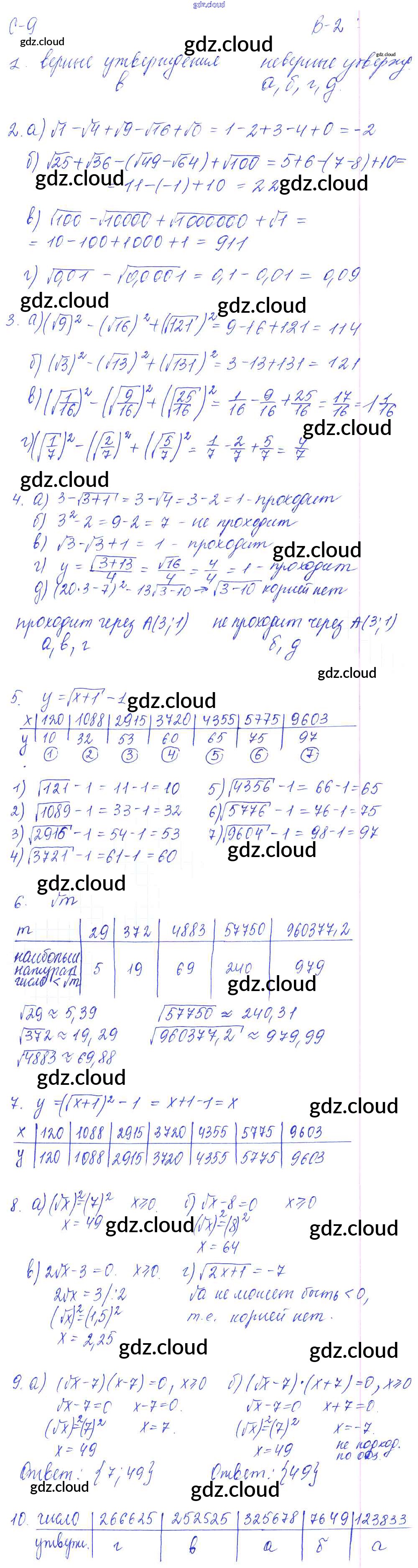СР - 9. Арифметический квадратный корень Ответы к Самостоятельным работам. Варианты по Алгебре 8 класс Дидактические материалы Звавич УМК Экзамен