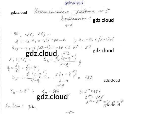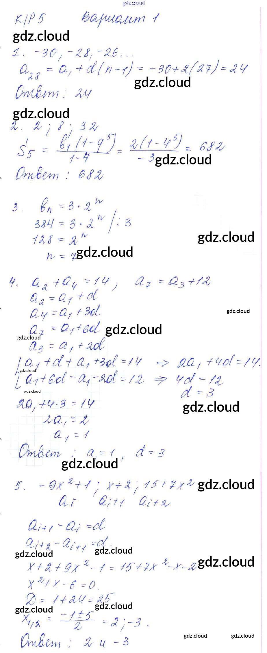 Ответы к контрольной работе №5 по Алгебре 9 класс Контрольные работы Александрова Мнемозина