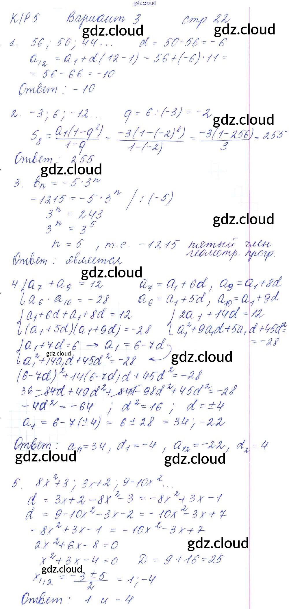 Ответы к контрольной работе №5 по Алгебре 9 класс Контрольные работы Александрова Мнемозина