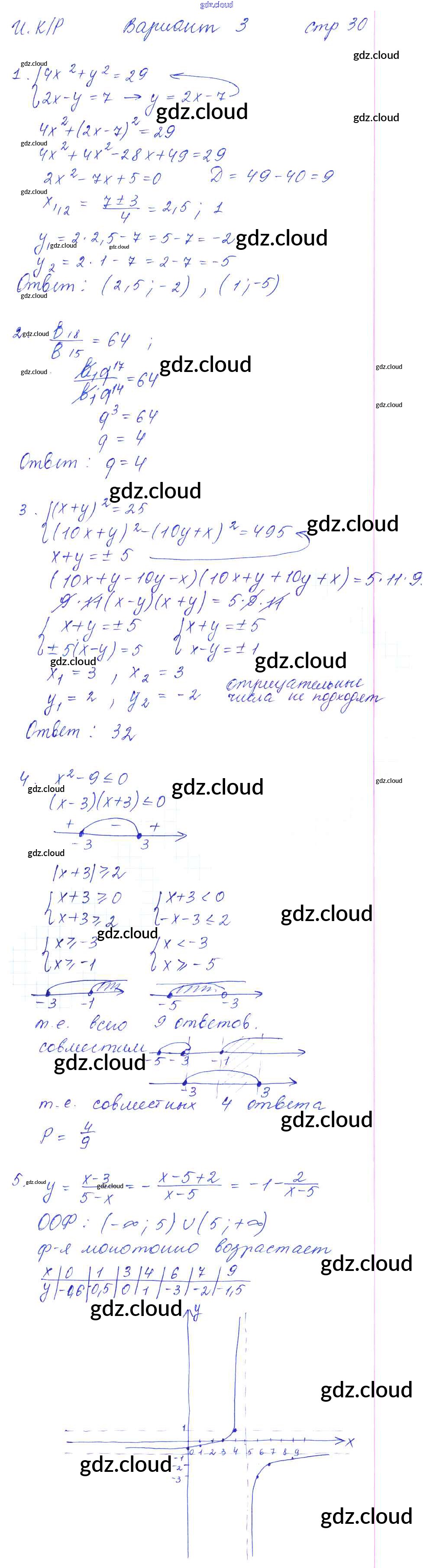 Ответ на задание вариант №3 Контрольные работы Алгебра за 9 (девятый) класс Александрова 2016