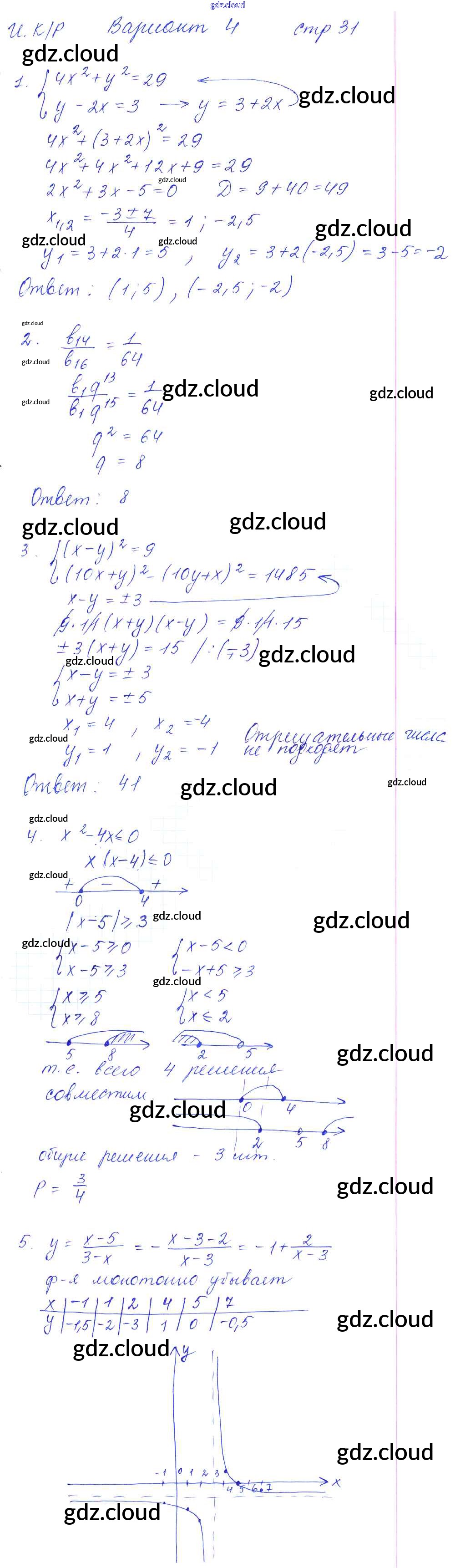 Ответ на задание вариант №4 Контрольные работы Алгебра за 9 (девятый) класс Александрова 2016