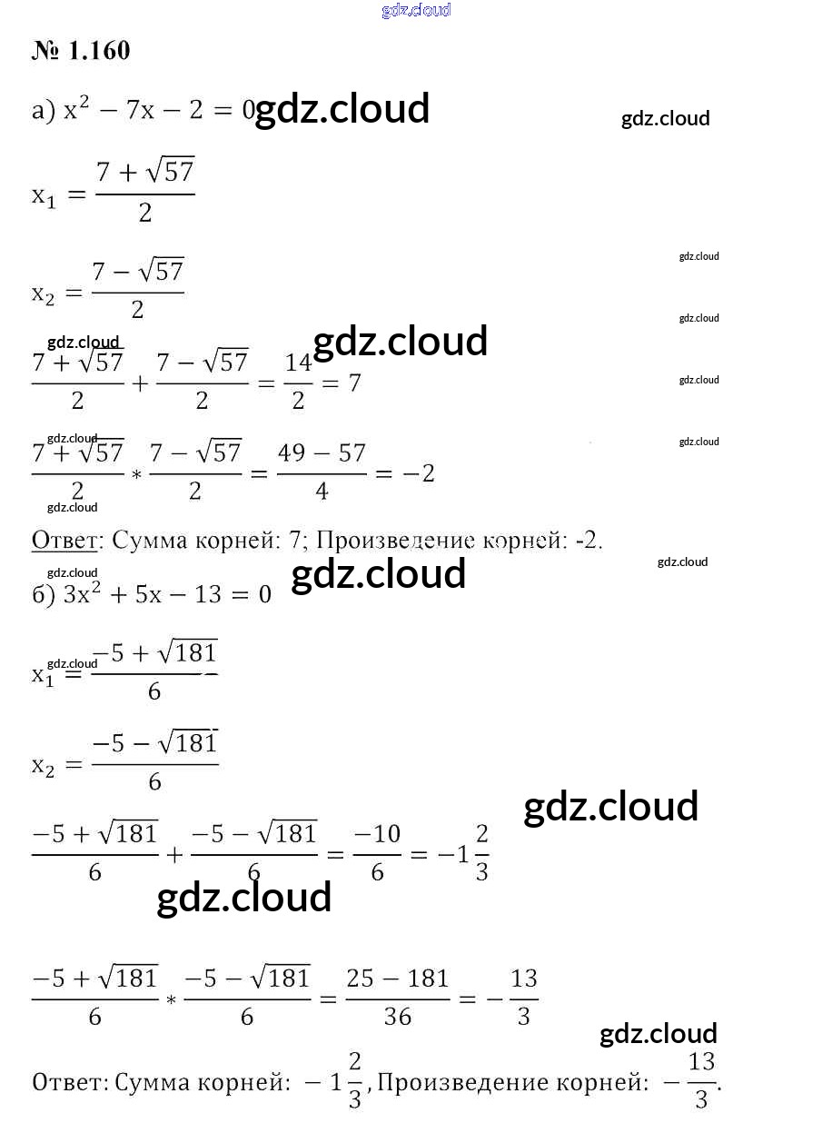 Ответ на задание 1.160 Учебник Алгебра за 9 (девятый) класс Арефьева, Пирютко 2019 онлайн и без номера телефона.