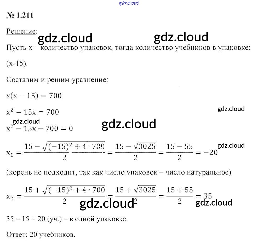 Ответ на задание 1.211 Учебник Алгебра за 9 (девятый) класс Арефьева, Пирютко 2019 онлайн и без номера телефона.