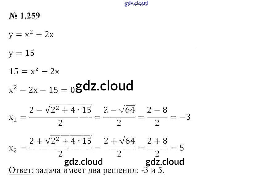 Ответ на задание 1.259 Учебник Алгебра за 9 (девятый) класс Арефьева, Пирютко 2019 онлайн и без номера телефона.
